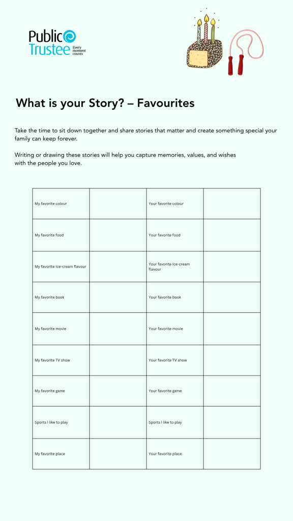 On this page, you will find downloadable keepsake activity sheets to fill out with your family members. This is a wonderful way to connect with children and encourages curiosity. The more we engage with our little ones, the more they feel a sense of belonging.